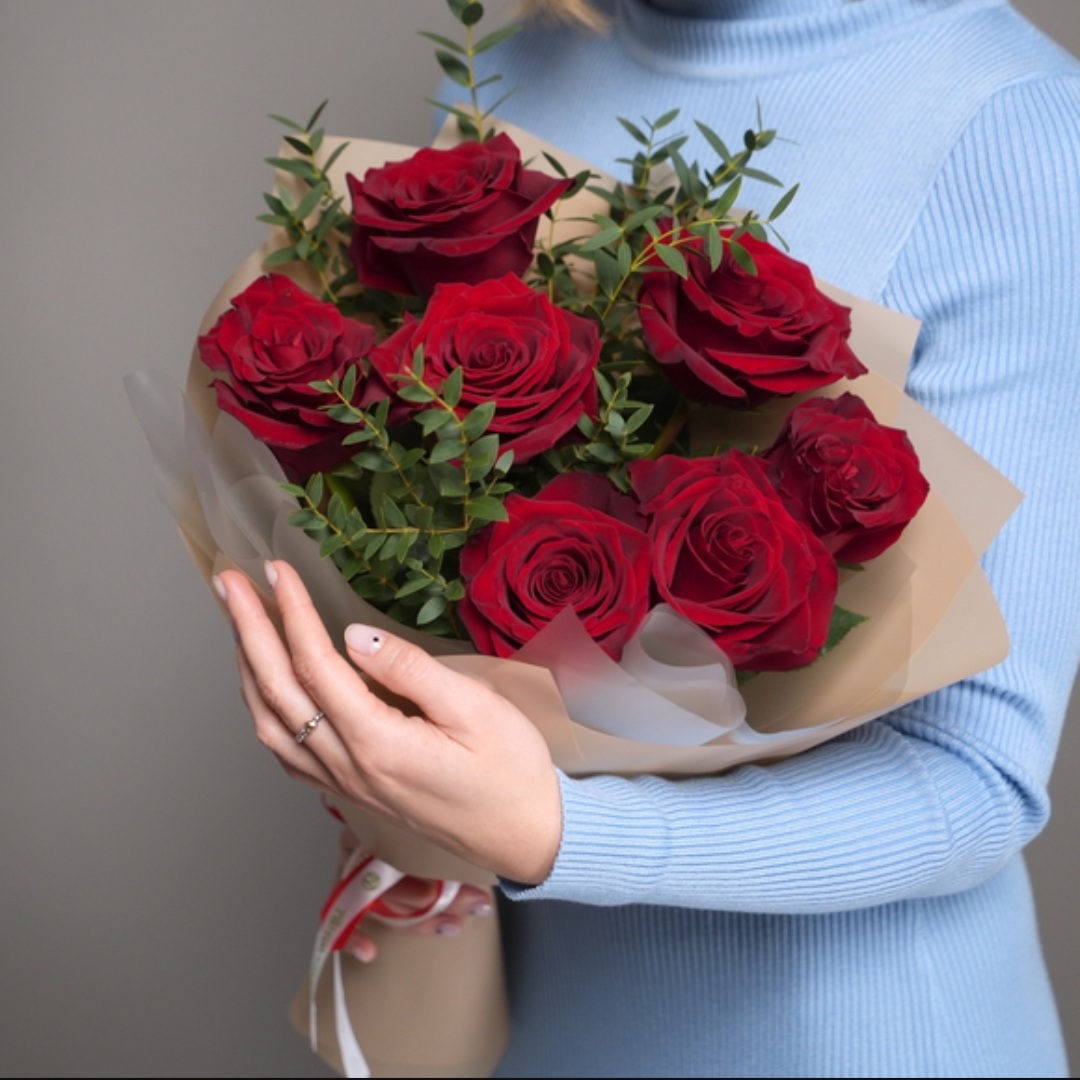 7 импортных роз, зелень