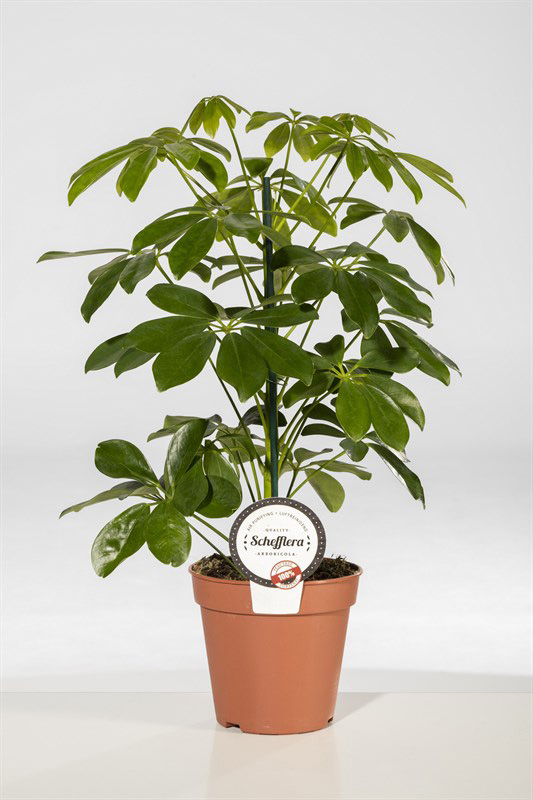 Елегантна декоративна рослина з рясним листям Шефлера підкорює своєю незвичністю та пишністю. Вона ідеально підходить для домашнього вирощування та дарує сприятливі емоції. Шефлера не вимагає особливого догляду за собою, любить розсіяне світло і помірний полив. Листочки Шефлери мають гладку текстуру та яскраво зелене забарвлення. Вони овальної форми і злегка приспущені донизу. Стовбур рослини відносно тонкий, але міцний та надійний. Шефлера потребує хорошого поливу в спекотні дні, а також у рясному зволоженні, тому обприскувати її потрібно кілька разів на день. Взимку слід полив скоротити, а обприскування зовсім припинити. Оптимальна температура для рослини – 18-20 ° С влітку і не нижче 12 ° С взимку.