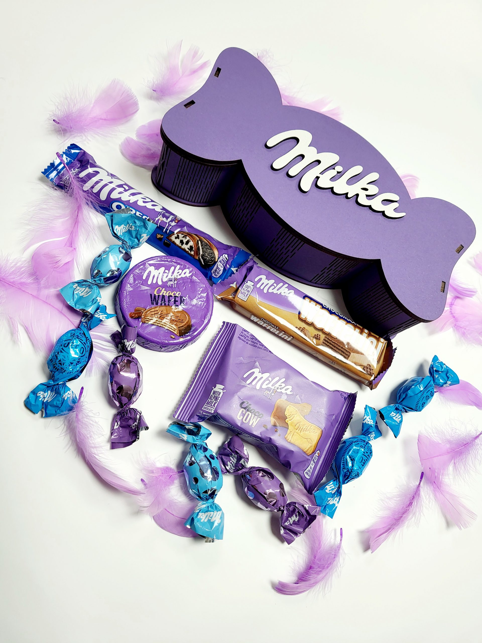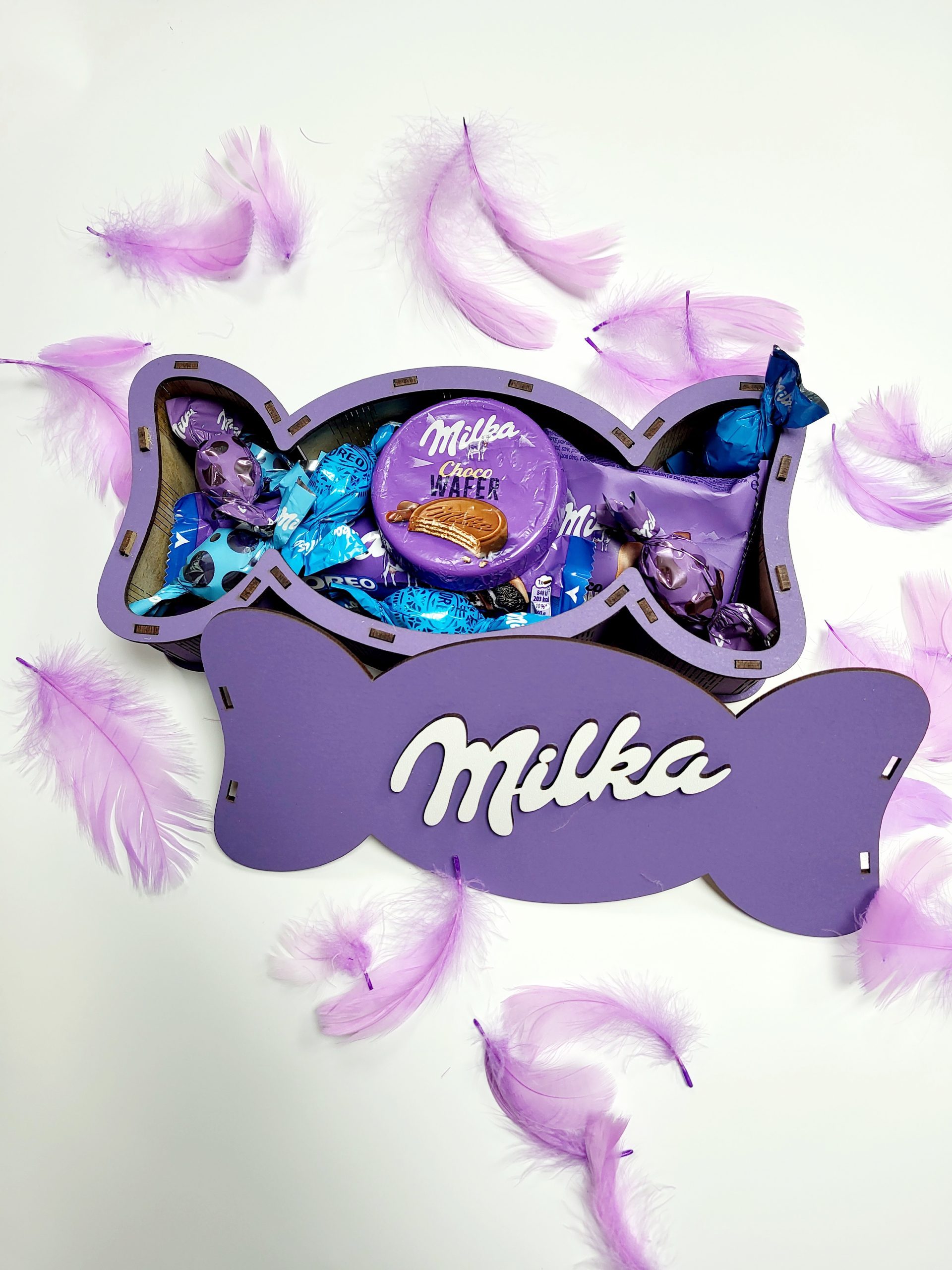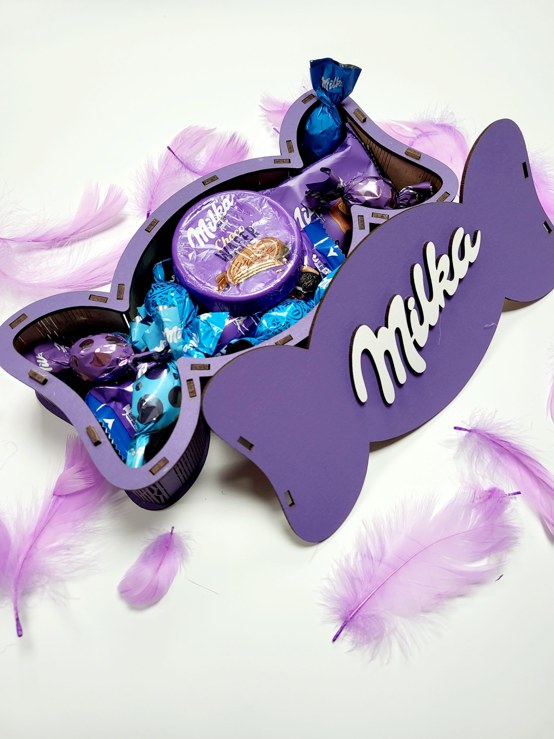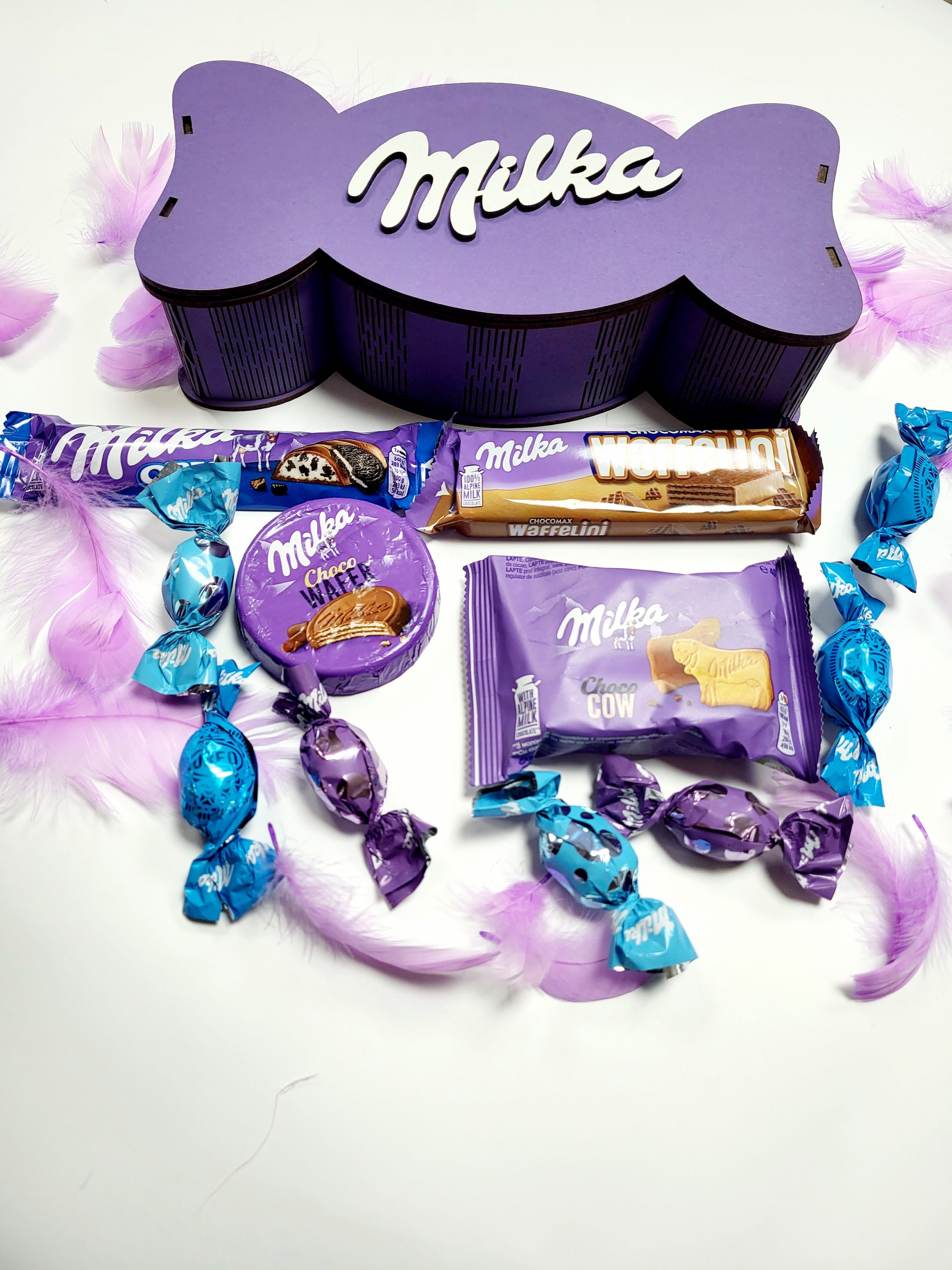 Солодкий подарунок Milka – це набір фірмових солодощів у красивій дерев’яній коробці, виготовленій у формі цукерки. Цю коробочку можна використовувати як скриньку, цукерницю і т.д. Цукерки Milka – це завжди смачний і відомий усім шоколад, який люблять і діти, і дорослі.